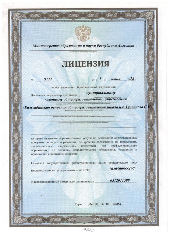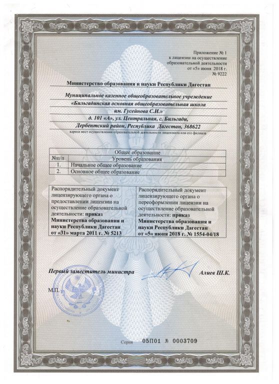 | Полное наименование образовательной организации* | Муниципальное бюджетное общеобразовательное учреждение "Бильгадинская основная общеобразовательная школа им. Гусейнова С.И." |